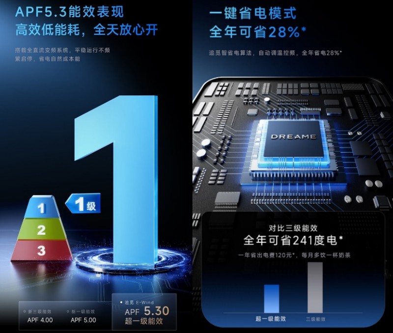 追觅E-Wind智省PRO搭载新型节能压缩机,APF值远超新国标一级,比普通一级能效空调节能显著,长期使用能转化为“省钱红利”,兼顾性价比与环保。