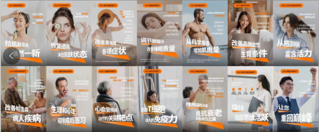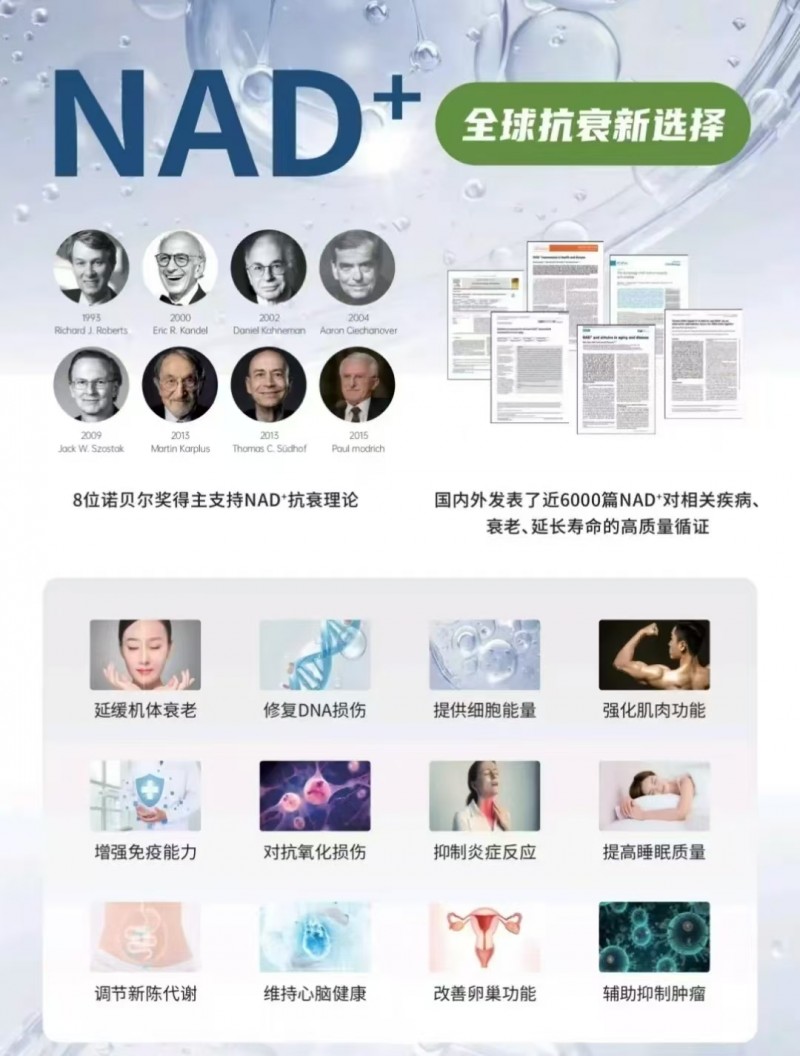 NAD+养气补血、NAD+新陈代谢、NAD+肝养净化、NAD+逆龄美白、NAD+增强免疫力、NAD+春巢悦动、NAD+促进唾眠 NAD+延短衰老等。