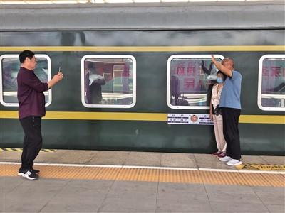 6月4日,西宁,Z21次列车发车前,旅客与列车拍照留念。新京报记者 杜寒三 摄