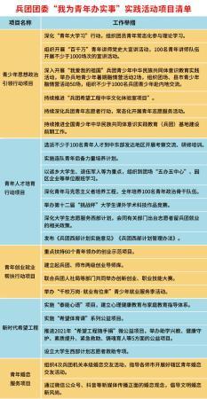 兵团团委积极推动“促进青年全面发展”列入兵团“十四五”规划,并制订了“我为青年办实事”项目清单(见图表),全力解决青少年最关心最直接最现实的利益问题。