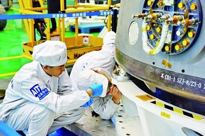 科研人员在检修神舟十二号飞船。航天科技集团五院供图