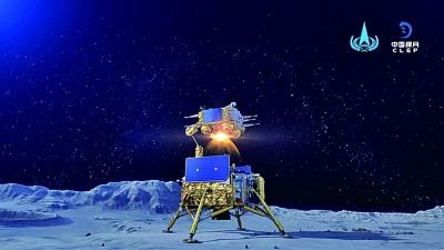 2020年12月3日,“嫦娥五号”上升器月面点火,我国首次成功实现地外天体起飞(资料图片)。国家航天局供图