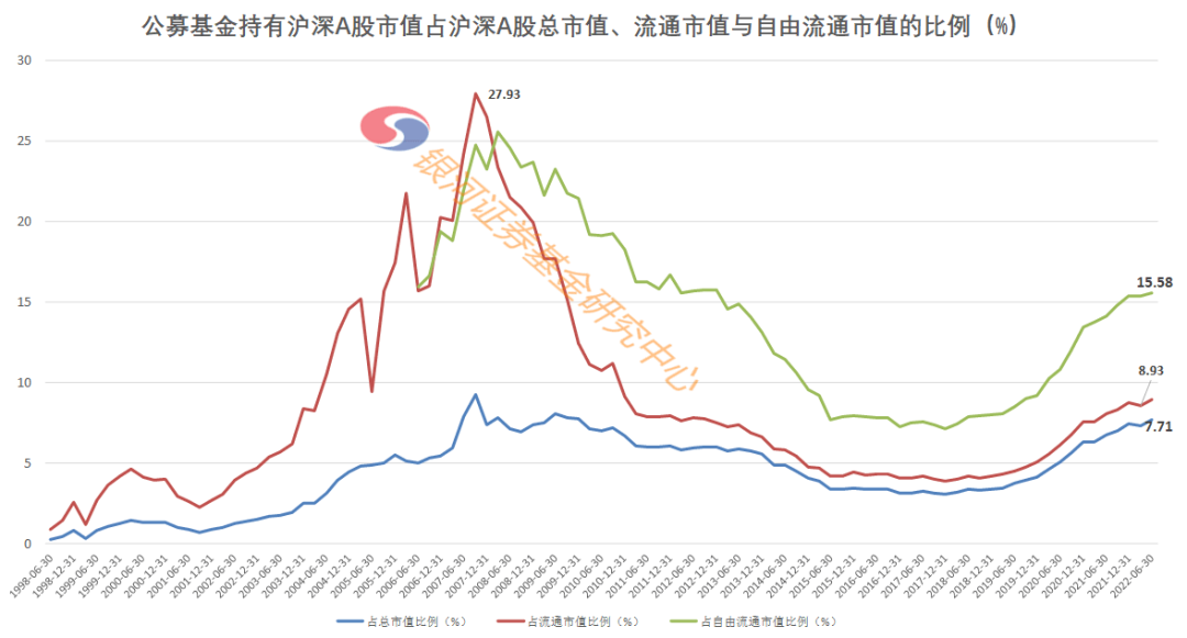 银河证券基金研究中心表示,公募基金股票市值占流通市值的比例是评价公募基金对a股市场影响力的重要指标。从季末已披露的数据来看,这一指标自2015年二季度末以来的七年间一直稳步上升,并连续站上4%、5%、6%、7%、8%等五大关口。